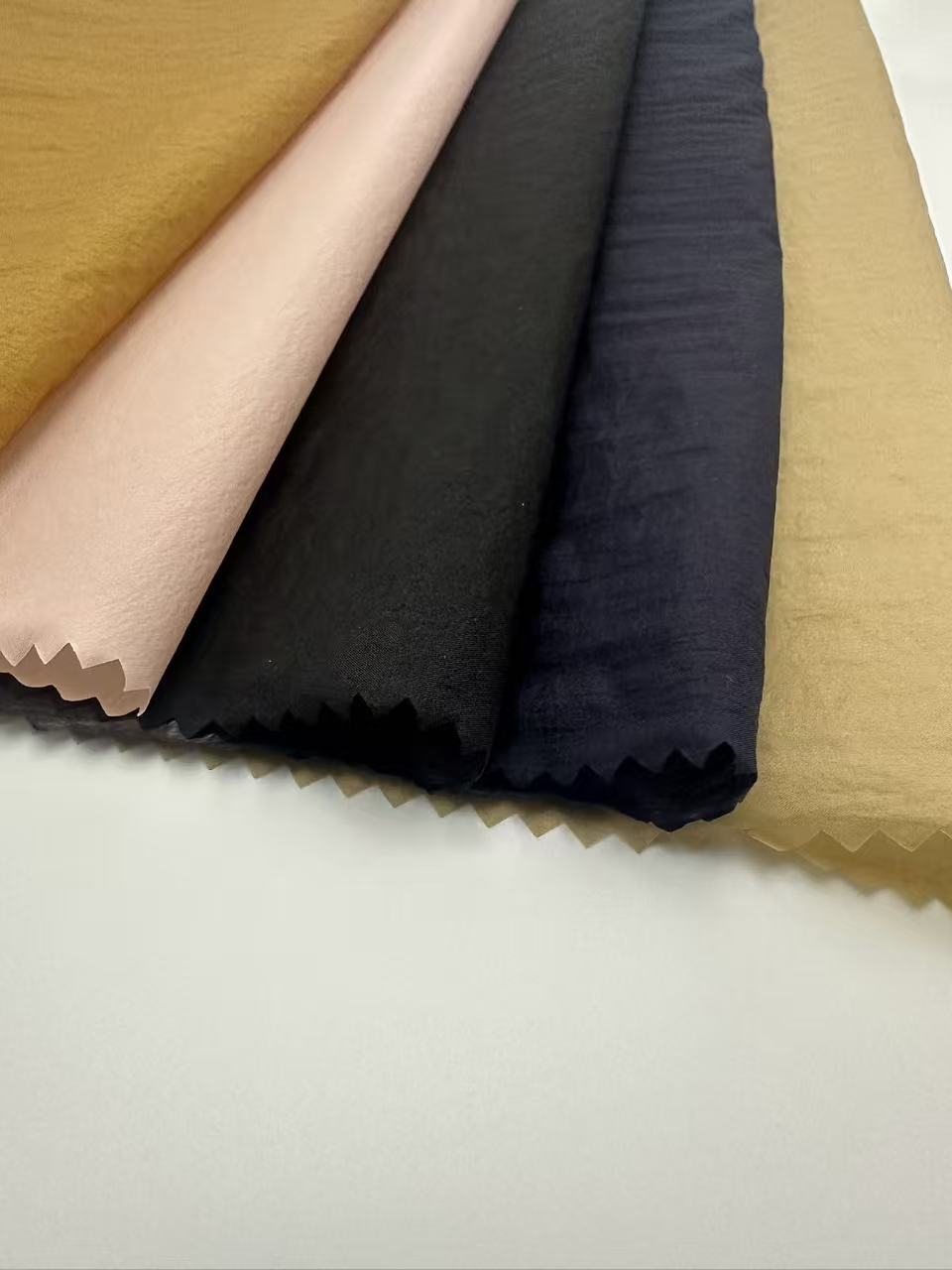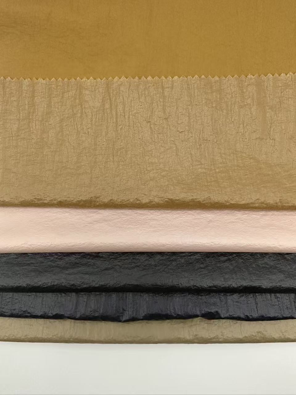This fabric is elasticity,unique wrinkled fabric style,the back is covered with PU film, which is waterproof and windproofcrafted from carefully selected premium ingredients, this fabric offers a luxurious blend of texture and smoothness. It features lively drape, supreme comfort against the skin, and excellent durability that’s easy to maintain. With rich, fade-resistant colors and wide versatility, it empowers your cutting-edge fashion designs!